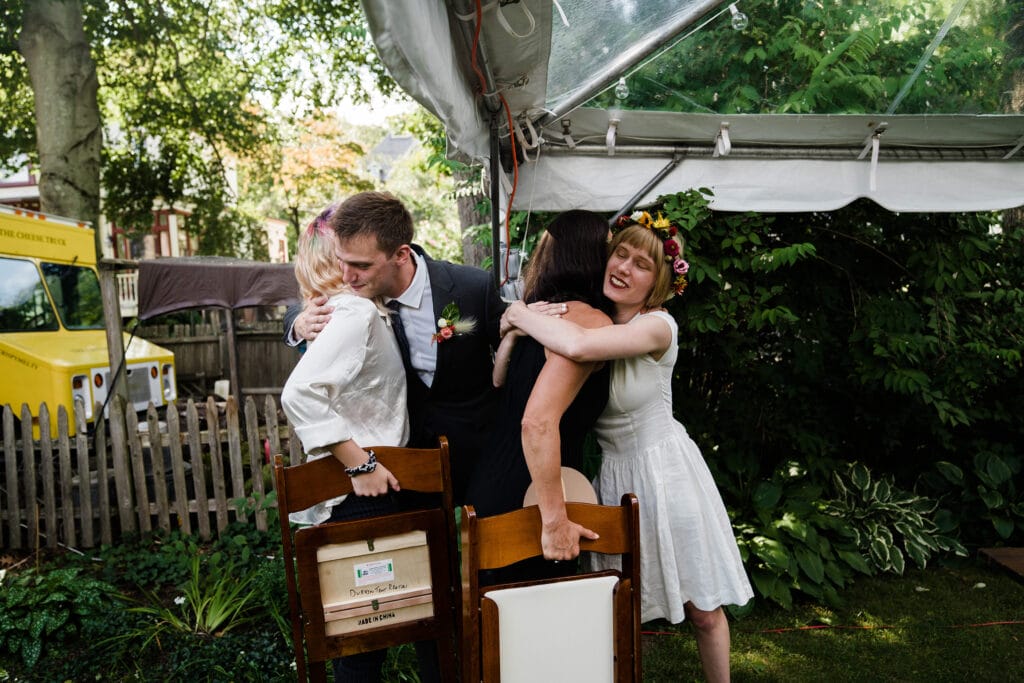 Allison and Sam are some of the greatest people I have had a chance to work with. They are both artists and have this wonderfully laid back way about them. Their friends and family were equally awesome and created a tight community of support and celebration. Allison and Sam got ready upstairs, had their ceremony in the living room