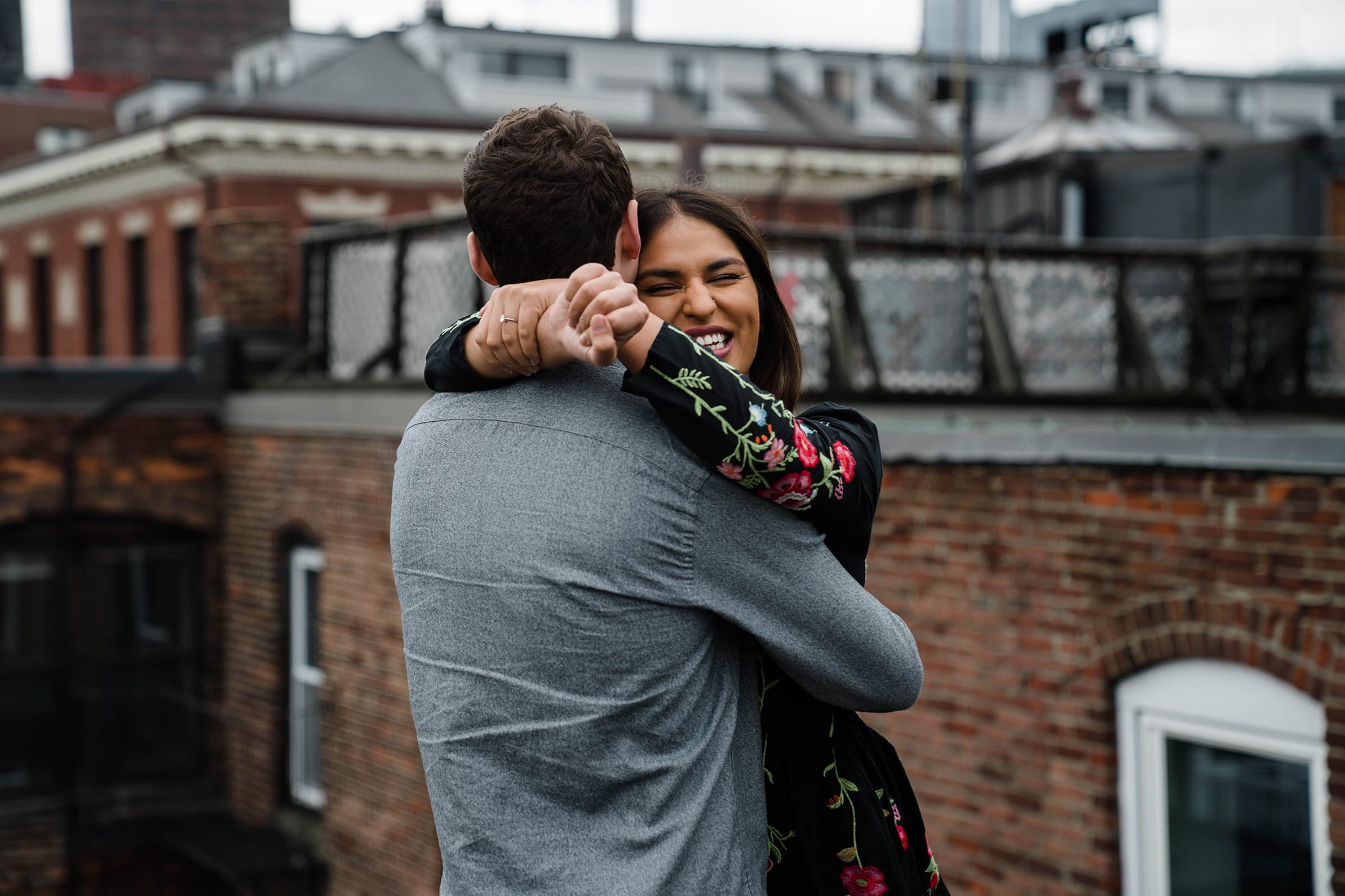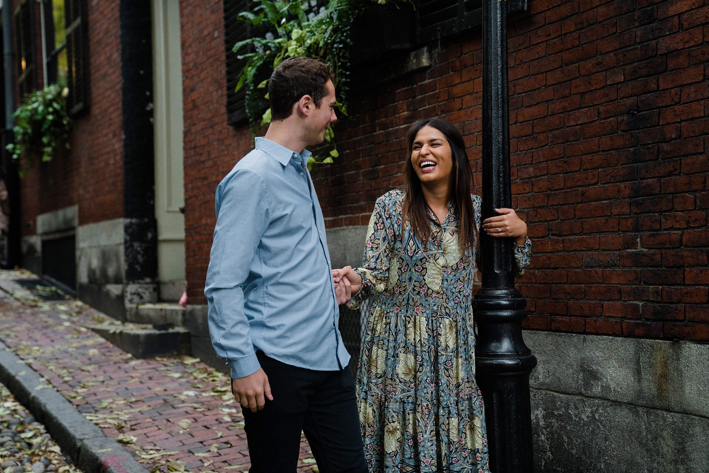 On a mild October evening, I met Aparna and Alex at their place for their Beacon Hill Engagement Session. We made our way to their roof and I documented them as they hung out, cuddled and laughed together. Before heading out to walk their usual route, we stopped inside their apartment. I really love taking photographs of people in their homes. There is something so personal and intimate about capturing someone where they eat, sleep and live most authentically. The photograph of Aparna and Alex laughing on their couch is one of my favorites from their session. I’m guessing, as time passes, it will be even more significant for them too.